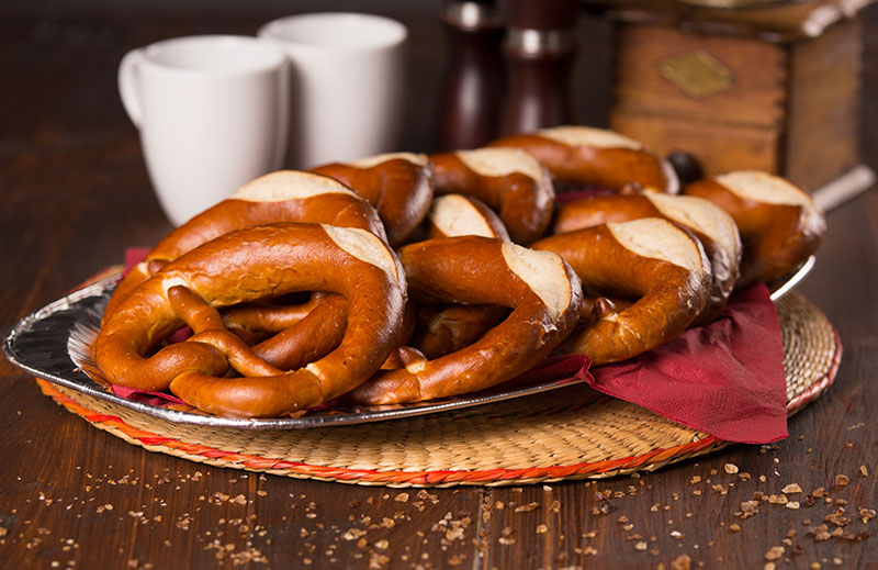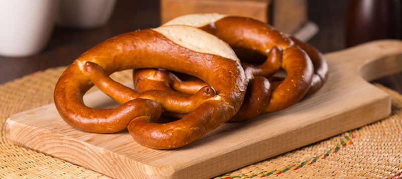 Leckere Laugenbrezel mit Butter gefüllt.