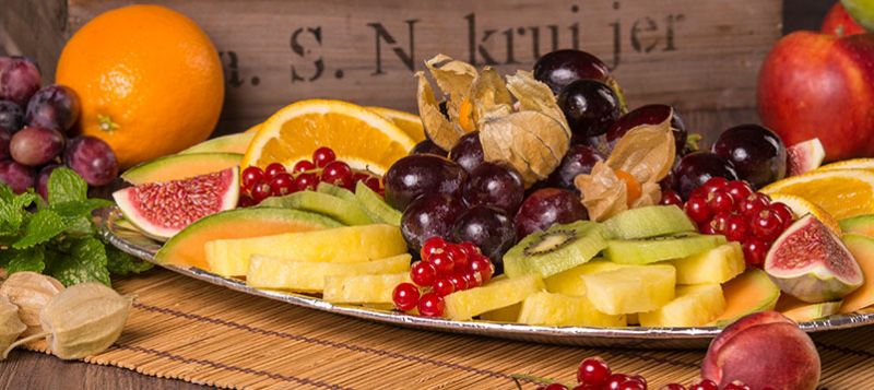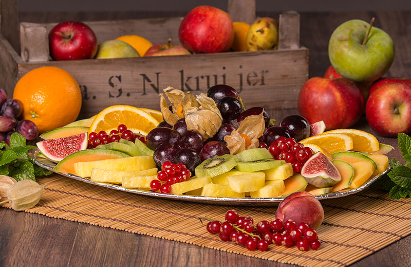Je nach Saison eine Auswahl von: Ananas, Kiwi, Melone, Trauben, Orangen, Erdbeeren, Feigen, Nektarinen, Aprikosen, Johannisbeeren, Brombeeren, Heidelbeeren