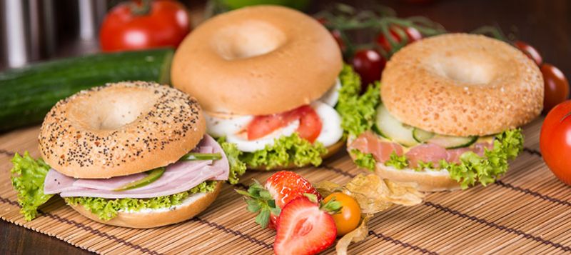 Bagel bestrichen mit Frischkäse und belegt mit: