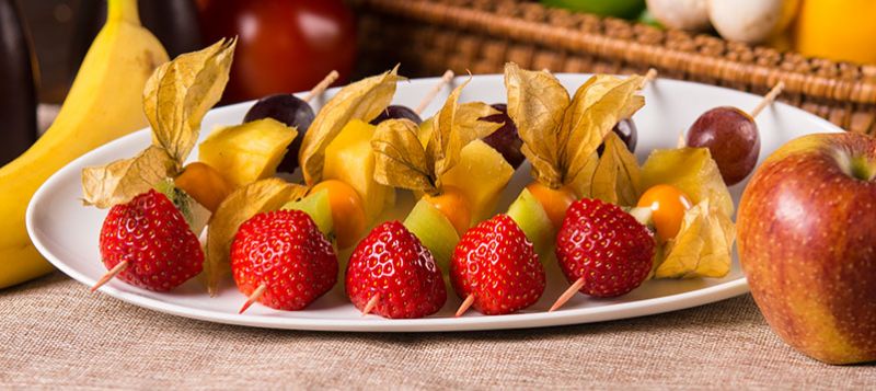 erdbeeren, weintrauben, physalis, apfel, ananas, melone