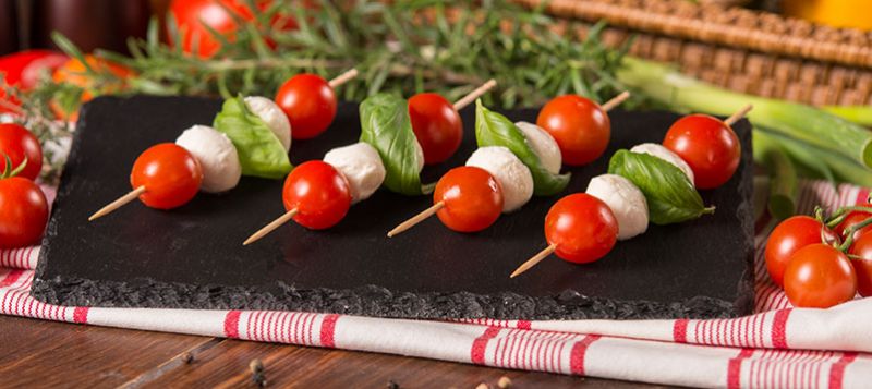 Gemischte Spieße mit:Tomate, Mozzarella und frischem Basilikumvegetarisch