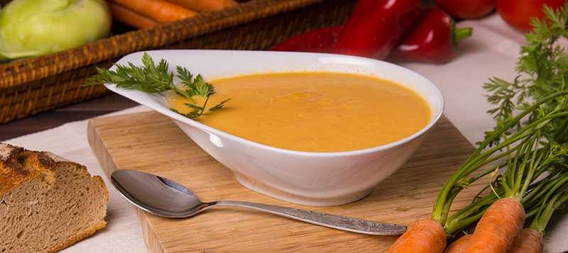 Nach altem Hausrezept aus frischen Karotten und Ingwer zubereitet.Lieferung im Thermobehälter.